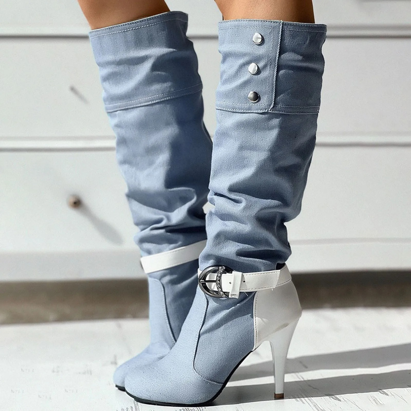 Bottes hautes uniques avec un design patchwork dynamique et des détails de boutons élégants. Conçues pour la polyvalence et la durabilité pendant les mois les plus froids.