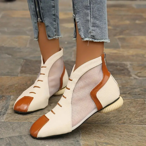 Ces bottines chics présentent un bout pointu élégant et un design en maille colorblock tendance, rehaussé d'une fermeture éclair pratique à l'arrière pour un port facile. Fabriquées en noir classique à partir de matériaux synthétiques de haute qualité, ces bottes garantissent à la fois durabilité et style. Parfaites pour ajouter une touche sophistiquée à votre garde-robe d'automne, elles offrent un mélange de mode et de confort. Entrez dans la saison avec style et facilité dans ces bottines tendance.