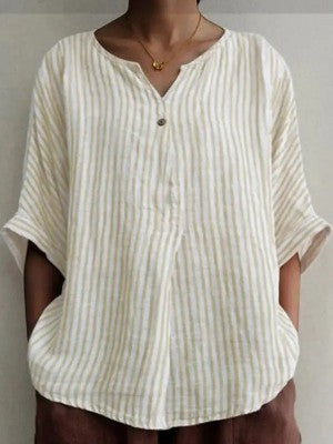 Chemisier décontracté à demi-manches et rayures sur fond blanc