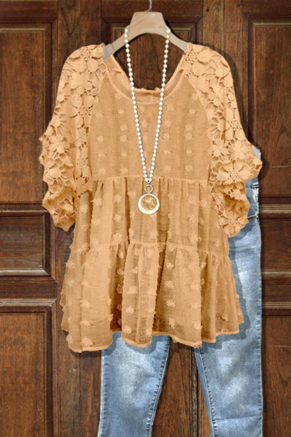 Chemisier en mousseline à manches volantées avec dentelle à la mode