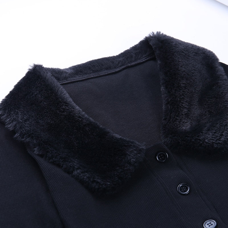 Elva - Pull cropped à col en fourrure duveteuse et à boutons
