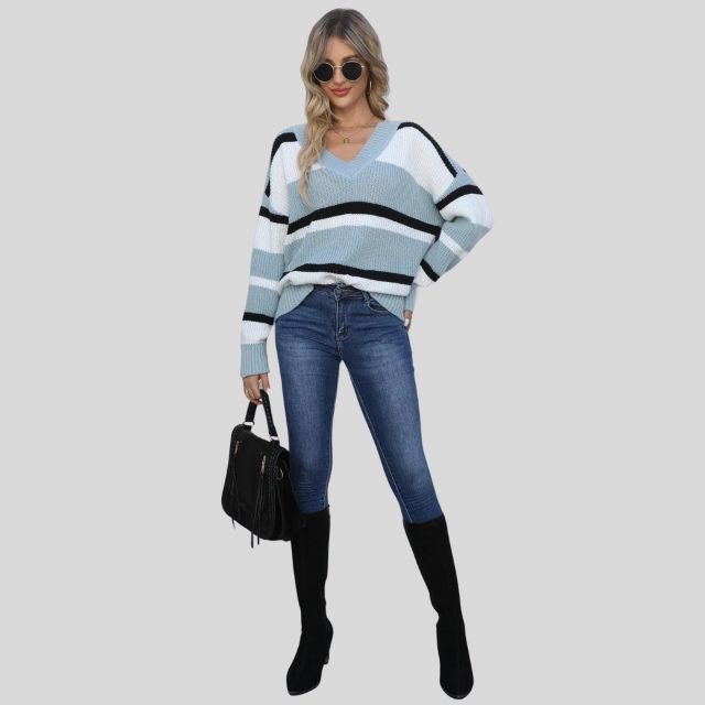 Emma - Pull décontracté à col en V et rayures contrastées