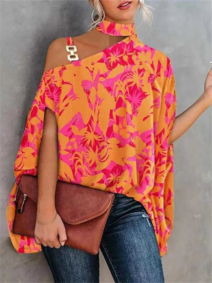 Estafania - T-shirt d'été à manches chauve-souris avec imprimé