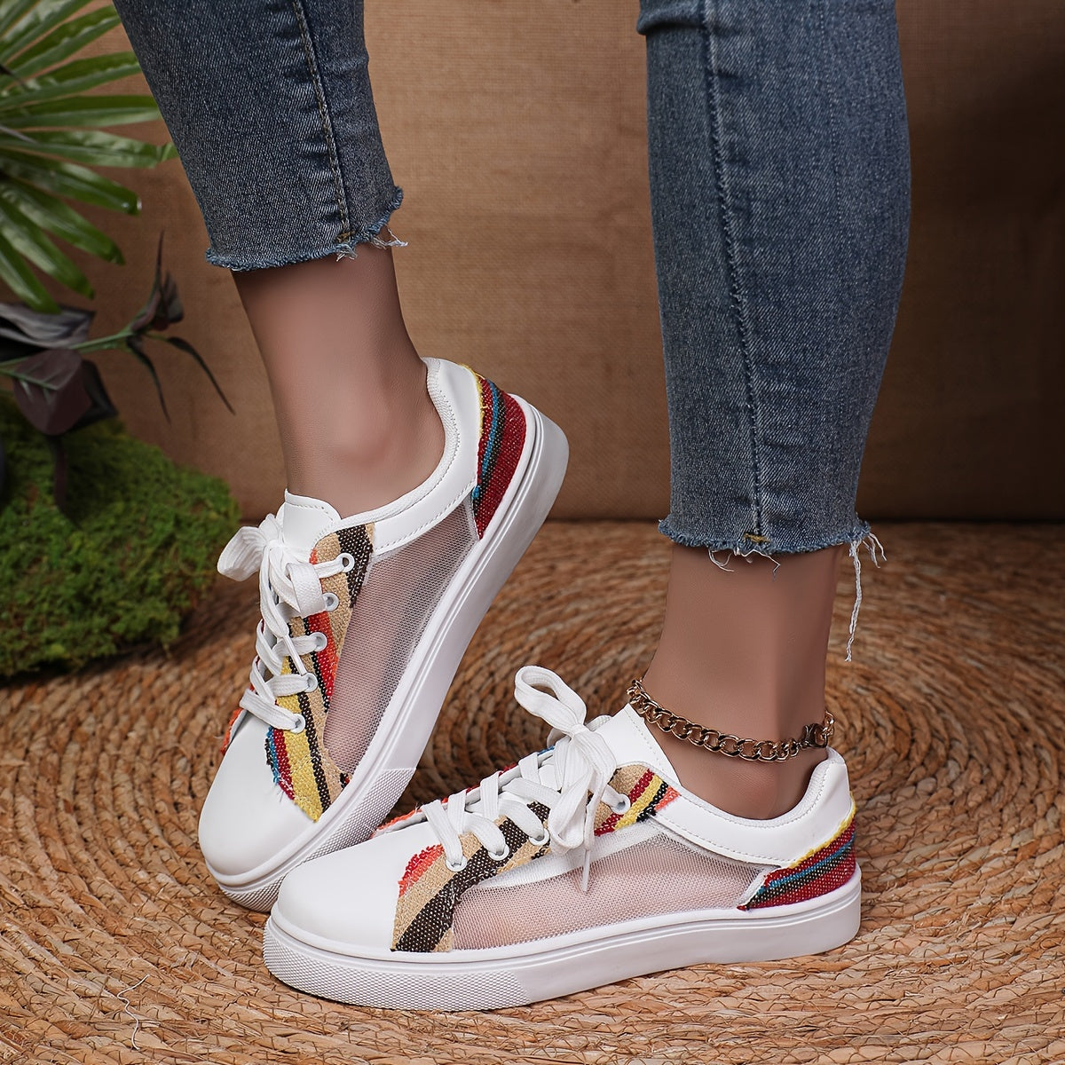 Les Juliette sneakers redéfinissent le confort avec une touche de fraîcheur estivale. Leur design semi-transparent en mesh léger permet à vos pieds de respirer tout en ajoutant une note colorée à votre tenue. Avec une semelle en PU confortable et un laçage ajustable, chaque pas devient un mélange parfait de style et de légèreté.