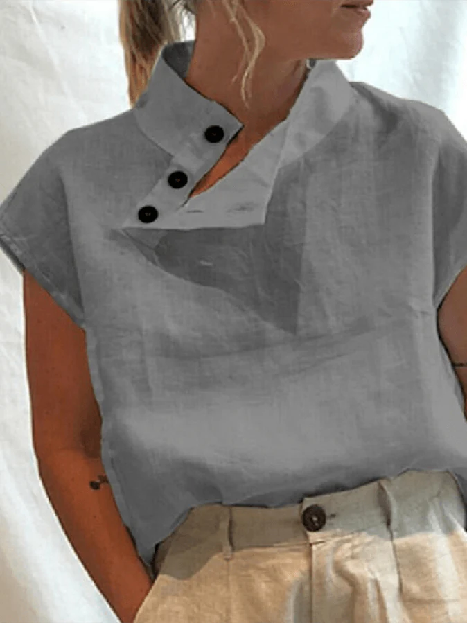 Karen - Col montant en coton mélangé 5XL T-shirt ample et simple