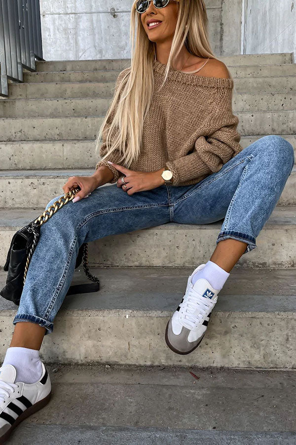 Pull confortable à col large pour un apparence décontracté