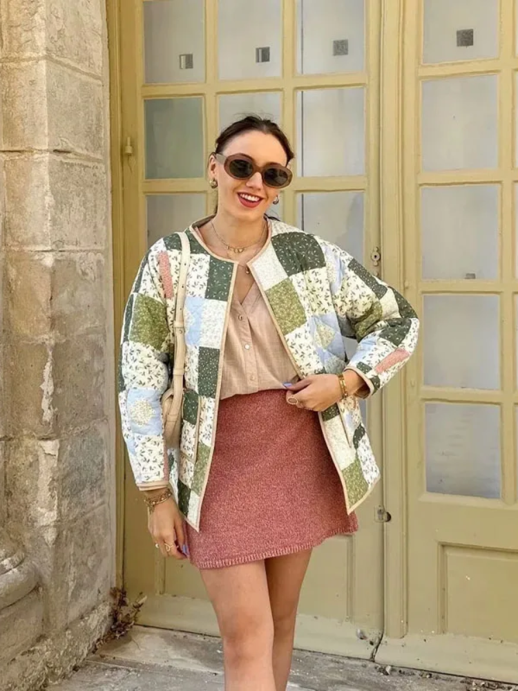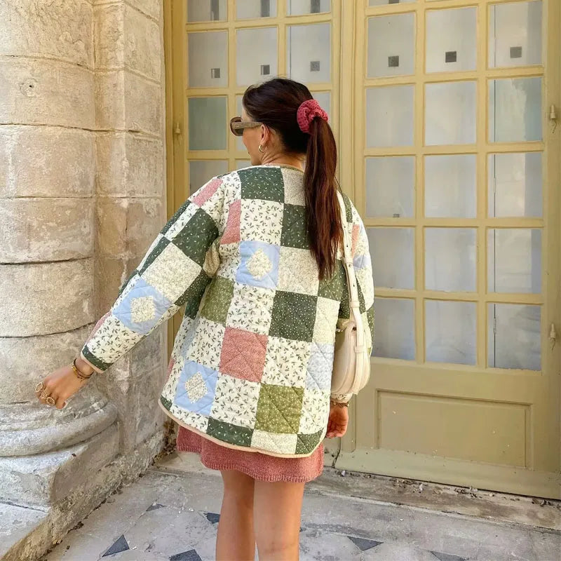 Ajoutez une touche d'élégance à votre garde-robe avec la veste matelassée Abeliana. Cette veste ouverte sur le devant est ornée d'un motif floral patchwork bleu et vert vif et présente une coupe décontractée avec des manches larges. Les couleurs vives et l'imprimé unique apportent une touche bohème à votre look.